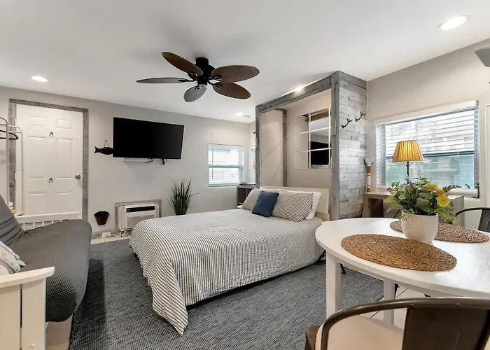 Quiet Corner Suite Heated Pool & 2 Mins 2 Beach van 23 m^2 is op 6 minuten lopen van Chute Em Up Parasail en op 15 km van de luchthaven Clearwater Air Park. Het 1-slaapkamer appartement biedt een draadloos internet in de hele accommodatie.
